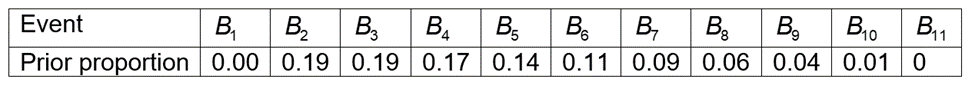 Let’s consider the following prior probabilities for the event \({B_1},...,{B_{11}}\) as follows: