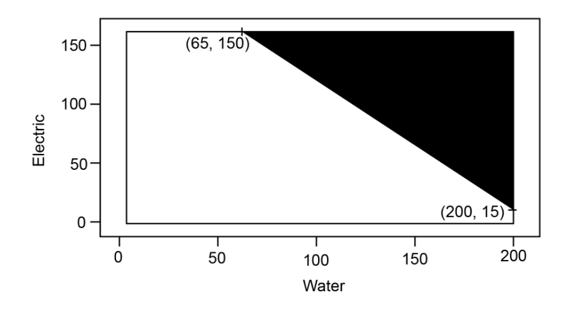 Consider the contractor in Example 1.5.4 on page 19. He wishes to compute the probability that the total utility demand is high, meaning that the sum of water and electrical demand (in the units of Example 1.4.5) is at least 215. Draw a picture of this event on a graph like Fig. 1.5 or Fig. 1.9 and find its probability.