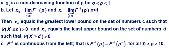 Prove that the quantile function F-1 of a general random variable X has the following three properties that are analogous to properties of the c.d.f.