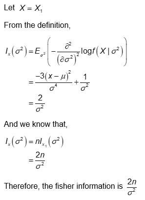 Suppose that a random variable X has the normal distribution with mean 0 and unknown variance σ2> 0. Find the Fisher information I(σ2) in X. Note that in this exercise, the variance σ2 is regarded as the parameter, whereas in Exercise 4, the standard deviation σ is regarded as the parameter.