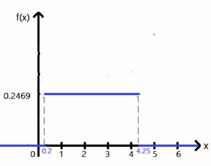 (a) The pdf of \({\rm{X}}\) is \({\rm{f(x) = }}\left\{ {\begin{array}{*{20}{l}}{{\rm{0}}{\rm{.2469}}}&{{\rm{0}}{\rm{.2}} \le {\rm{X}} \le {\rm{4}}{\rm{.25}}}\\{\rm{0}}&{{\rm{ otherwise }}}\end{array}} \right.\) and the graph is 鈥