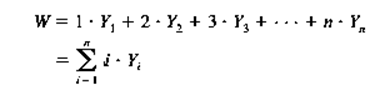 a. Determine \({\rm{E}}\left( {{{\rm{Y}}_{\rm{i}}}} \right){\rm{ }}\)and then \({\rm{E(W)}}\)using the equation for \({\rm{W}}\). (Hint: The first n positive integers sum to \({\rm{n(n + 1)/2}}{\rm{.)}}\)