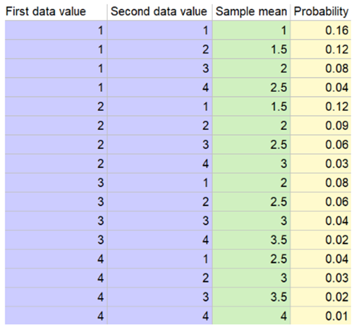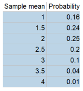 a. Consider a random sample of size \({\rm{n = 2}}\) (two customers), and let \({\rm{\bar X}}\) be the sample mean number of packages shipped. Obtain the probability distribution of\({\rm{\bar X}}\).