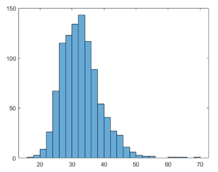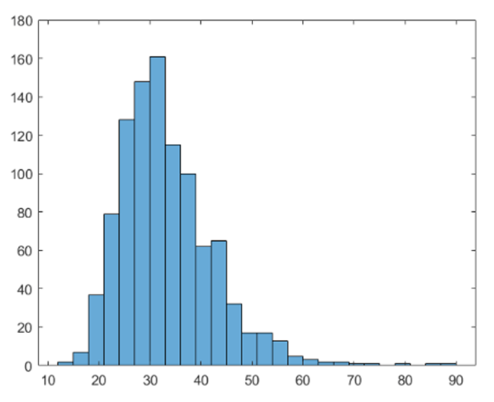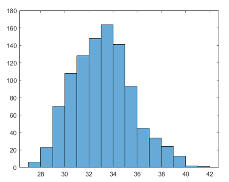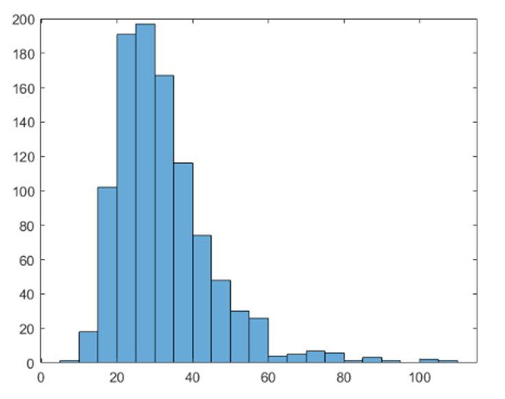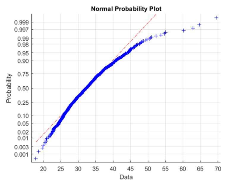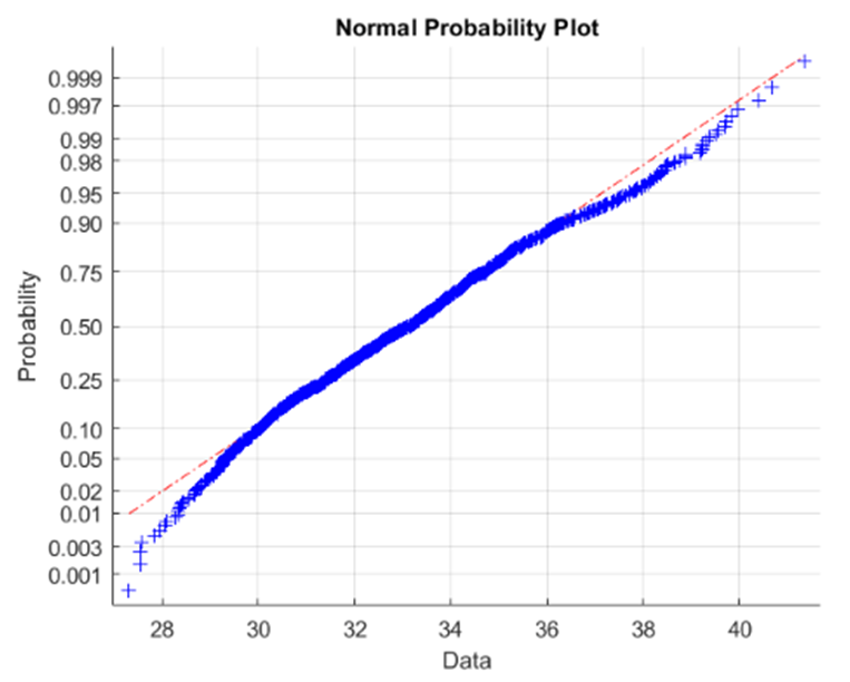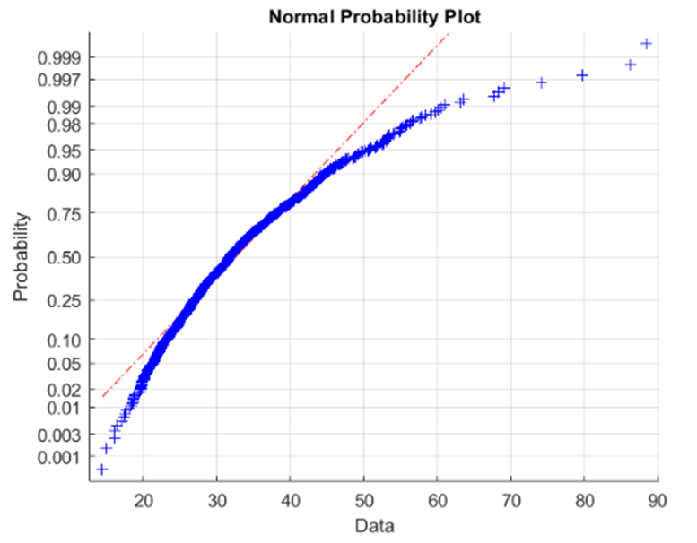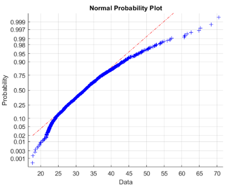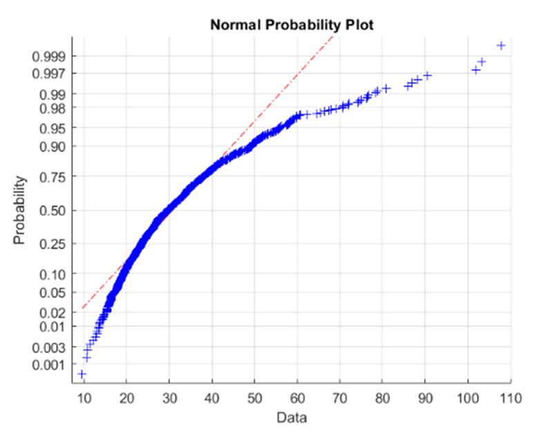 The last histogram and normal probability plot are for sample size\({\rm{n = 300}}\), mainly to show that the sample distribution becomes closer to normal as \({\rm{n}}\) rises.