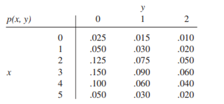 The joint probability di\({\rm{Y}} \le {\rm{1) = 0}}{\rm{.12}}\)stribution of the number \({\rm{X}}\) of cars and the number \({\rm{Y}}\) of buses per signal cycle at a proposed left-turn lane is displayed in the accompanying joint probability table.