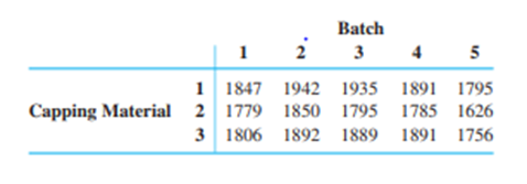 The accompanying data was obtained in an experiment to investigate whether compressive strength of concrete cylinders depends on the type of capping material used or variability in different batches (" The Effect of Type of Capping Material on the Compressive Strength of Concrete Cylinders, Proceedings ASTM, 1958: 11661186). Each number is a cell total based on K=3 observations.