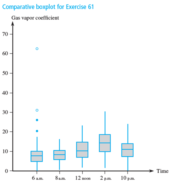 The accompanying comparative boxplot of gasoline vapor coefficients for vehicles in Detroit appeared in the article 鈥淩eceptor Modeling Approach to VOCEmission Inventory Validation鈥 (J. of Envir. Engr.,1995: 483鈥490). Discuss any interesting features.
