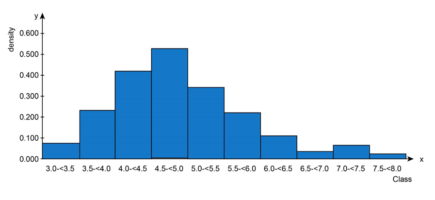 d. Construct a histogram with density on the vertical axis and compare to the histogram in (c).