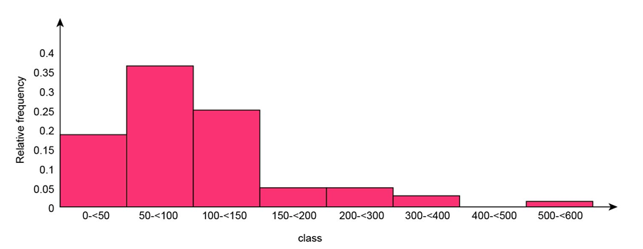 b. Construct a frequency distribution and histogram of the data using class boundaries 0, 50, 100, 鈥 , and then comment on interesting characteristics.