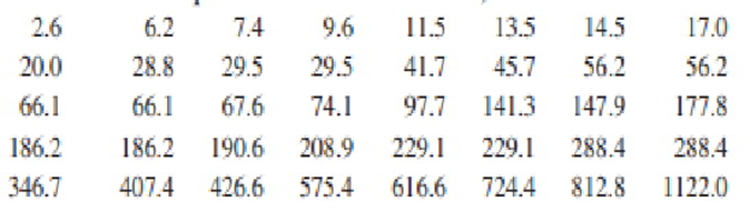 Urinary angiotensinogen (AGT) level is one quantitative indicator of kidney function. The article 鈥淯rinary Angiotensinogen as a Potential Biomarker of Chronic Kidney Diseases鈥 (J. of the Amer. Society of Hypertension, \({\rm{2008: 349 - 354}}\)) describes a study in which urinary AGT level \({\rm{(\mu g)}}\) was determined for a sample of adults with chronic kidney disease. Here is representative data (consistent with summary quantities and descriptions in the cited article):