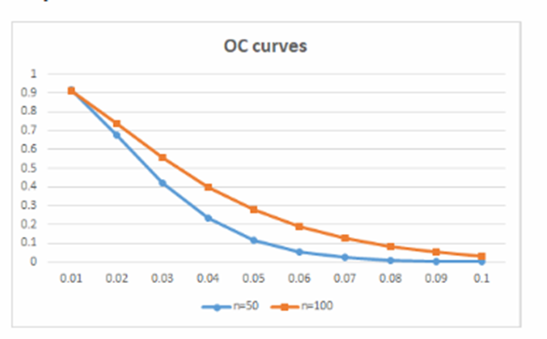 \(\begin{aligned}{*{20}{c}}p&{B(1;50,p)}\\{0.01}&{0.9106}\\{0.02}&{0.7358}\\{0.03}&{0.5553}\\{0.04}&{0.4005}\\{0.05}&{0.2794}\\{0.06}&{0.19}\\{0.07}&{0.1265}\\{0.08}&{0.0827}\\{0.09}&{0.0532}\\{0.1}&{0.0338}\\{}&{}\end{aligned}\)