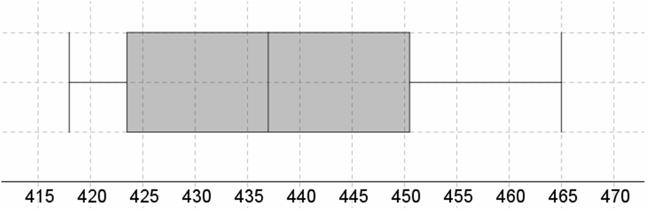 The article 鈥淢easuring and Understanding the Aging of Kraft Insulating Paper in Power Transformers鈥 contained the following observations on degree of polymerization for paper specimens for which viscosity tim\({\rm{418 421 421 422 425 427 431 434 437 439 446 447 448 453 454 463 465}}\)es concentration fell in a certain middle range: