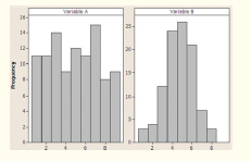 Which of the distributions shown has a larger standard deviation? Justify your answer.