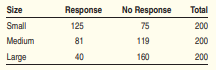 A survey was designed to study how business operations vary according to their size. Companies were classified as small, medium, or large. Questionnaires were sent to 200 randomly selected businesses of each size. Since not all questionnaires in a survey of this type are returned, researchers decided to investigate the relationship between the response rate and the size of the business. The data are given in the following two-ways