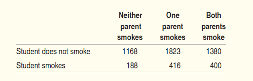 Smoking by students and parents Refer to Exercise 20. Calculate three conditional distributions of students鈥 smoking behavior: one for each of the three parental smoking categories. Describe the relationship between the smoking behaviors of students and their parents in a few sentences.