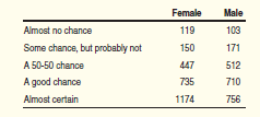The National Survey of Adolescent Health interviewed several thousand teens (grades 7 to 12). One question asked was "What do you think are the chances you will be married in the next ten years?" Here is a two-way table of the responses by gender: Your percent from the previous exercise is part of-
