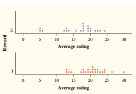 A dot-plot of the two groups鈥 creativity scores is shown below. Compare the two distributions. What do you conclude about whether external rewards promote creativity?