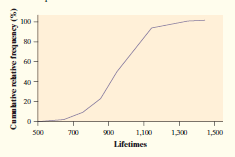 Light it up! The graph below is a cumulative relative frequency graph showing the lifetimes (in hours) of lamps.