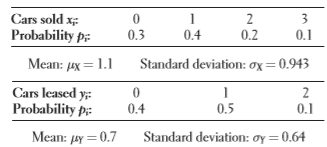 A large auto dealership keeps track of sales and leases agreements made during each hour of the day. Let = the number of cars sold and = the number of cars leased during the 铿乺st hour of business on a randomly selected Friday. Based on previous records, the probability distributions of and are as follows:
