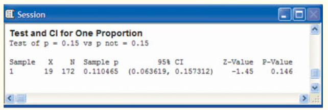(d) Do these data give convincing evidence that the actual population proportion differs from 0.15? Justify your answer with appropriate evidence.