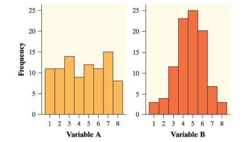 Comparing SD Which of the following distributions has a smaller standard deviation? Justify your answer.