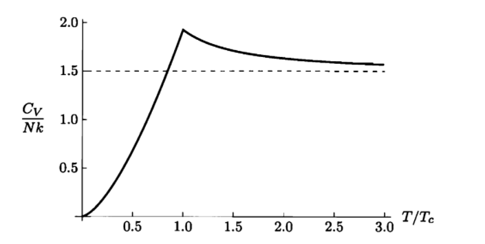 Figure 7.37. Heat capacity of an ideal Bose gas in a three-dimensional box.