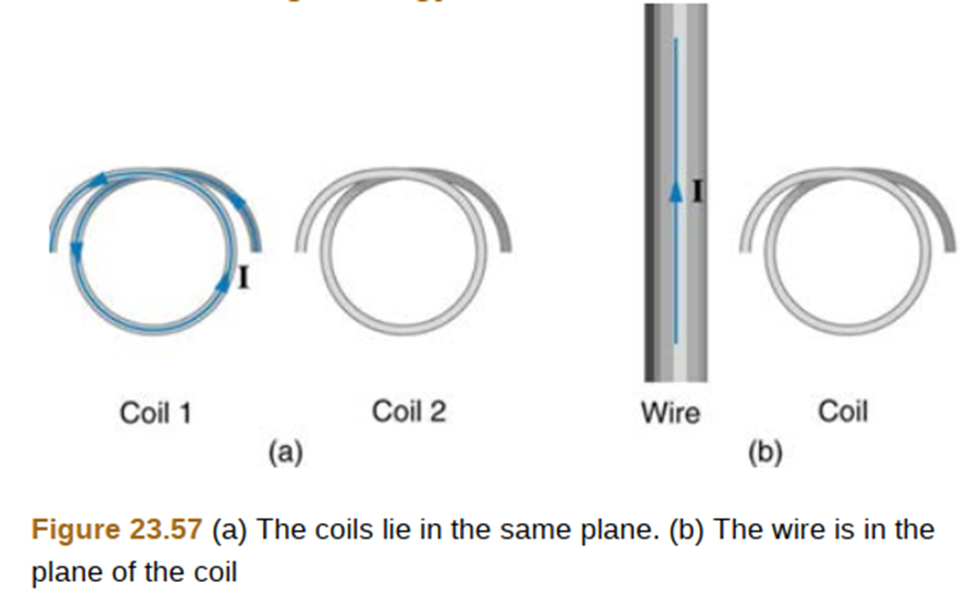 Approximately how does the emf induced in the loop in Figure 23.57(b) depend on the distance of the center of the loop from the wire?