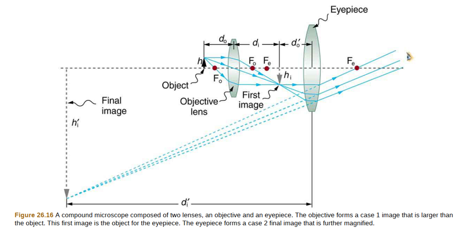 The image produced by the microscope in figure below cannot be projected. Could extra lenses or mirrors project it? Explain.