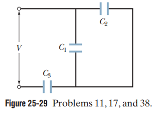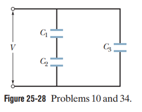 In Fig. 25-29, find the equivalent capacitance of the combination. Assume that , and
