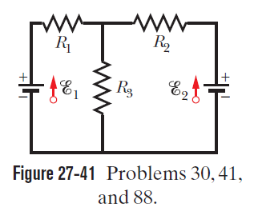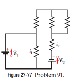 In Fig. 27-41,,, and the ideal batteries have emfs and . What value of results in no current through battery 1?