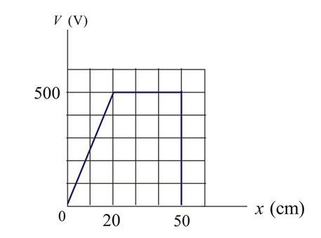 A positron (charge +e, mass equal to the electron mass) is moving at 1.0x107 m/sin the positive direction of an xaxis when, at x=0, it encounters an electric field directed along the xaxis. The electric potential Vassociated with the field is given in Fig. 24-57. The scale of the vertical axis is set by Vs=500.0 V. (a) Does the positron emerge from the field at x=0(which means its motion is reversed) or at x=0.50 m(which means its motion is not reversed)? (b) What is its speed when it emerges?