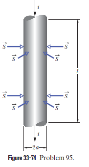 Figure 33-74 shows a cylindrical resistor oflength,radius , and resistivity carrying current.(a) Show that the Poyntingvector at the surface of the resistor is everywhere directed normal to the surface, as shown. (b) Show that the rate at which energy flows into the resistor through its cylindrical surface, calculated by integrating thePoynting vector over this surface, is equal to the rate at which thermal energy is produced: localid="1664201793898" wherelocalid="1664201800300" is an element of the area on the cylindrical surface and localid="1664201803478" is the resistance.