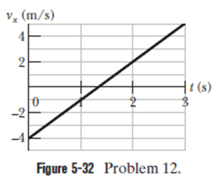 Two horizontal forces and act on a disk that slides over frictionless ice, on which an x-ycoordinate system is laid out. Force is in the positive direction of the xaxis and has a magnitude of . Force has a magnitude of. Figure gives the xcomponent of the velocity of the disk as a function of time tduring the sliding. What is the angle between the constant directions of forces and ?