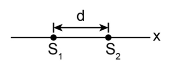 In Fig. 35-37, two isotropic point sources S1 and S2 emit identical light waves in phase at wavelength. The sources lie at separation on an x axis, and a light detector is moved in a circle of large radius around the midpoint between them. It detects 30points of zero intensity, including two on the xaxis, one of them to the left of the sources and the other to the right of the sources. What is the value of ?
