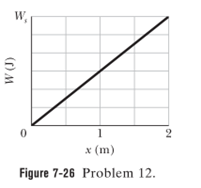 A can of bolts and nuts is pushed 2.00 m along an x axis by a broom along the greasy (frictionless) floor of a car repair shop in a version of shuffleboard. Figure 7-26 gives the work Wdone on the can by the constant horizontal force from the broom, versus the can’s position x. The scale of the figure’s vertical axis is set by WS=6 J. (a) What is the magnitude of that force? (b) If the can had an initial kinetic energy of 3.00 J, moving in the positive direction of the x axis, what is its kinetic energy at the end of the 2.00 m?