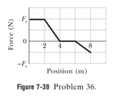 A 5.0 kg block moves in a straight line on a horizontal frictionless surface under the influence of a force that varies with position as shown in Fig.7-39. The scale of the figure’s vertical axis is set by. How much work is done by the force as the block moves from the origin to ?