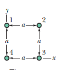 Question:In Figure, four long straight wires are perpendicular to the page, and their cross sections form a square of edge length . The currents are out of the page in wires 1 and 4 and into the page in wires 2 and 3, and each wire carries 20 A. In unit-vector notation, what is the net magnetic field at the square’s center?