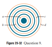Figure 29-32 shows four circular Amperian loops (a, b, c, d) and, in cross section, four long circular conductors (the shaded regions), all of which are concentric. Three of the conductors are hollow cylinders; the central conductor is a solid cylinder. The currents in the conductors are, from smallest radius to largest radius, 4 A out of the page, 9 A into the page, 5 A out of the page, and 3 A into the page. Rank the Amperian loops according to the magnitude ofaround each, greatest first.