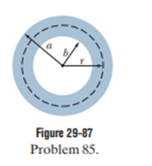 Figure 29-87 shows a cross section of a hollow cylindrical conductor of radii aand b, carrying a uniformly distributed currenti. (a) Show that the magnetic field magnitude B(r) for the radial distancer in the rangeis given by