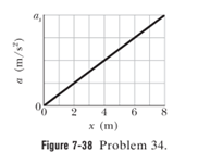 A 10 kg brick moves along an x axis. Its acceleration as a function of its position is shown in Fig.7-38. The scale of the figure’s vertical axis is set by as 20.0 m/s2. What is the net work performed on the brick by the force causing the acceleration as the brick moves from ?