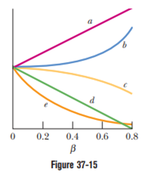 Reference frameis to pass reference frame at speed along the common direction of the and axes, as in Fig. 37-9. An observer who rides along with frame is to count off on his wristwatch. The corresponding time interval is to be measured by an observer in frame . Which of the curves in Fig. 37-15 best gives (vertical axis of the graph) versus speed parameter?