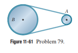 Wheels Aand Bin Fig. 11-61 are connected by a belt that does not slip. The radius of Bis 3.00 times the radius of A. What would be the ratio of the rotational inertiasif the two wheels had (a) the same angular momentum about their central axes? (b) the same rotational kinetic energy?