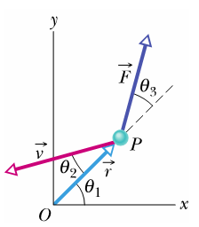 At the instant of Figure, a 2.0kg particle Phas a position vector of magnitude 3.0mand angle and a velocity vector of magnitude 4.0m/sand angle. Force, of magnitude 2.0Nand angleacts on P. All three vectors lie in the xy plane. About the origin, (a) What is the magnitude of the angular momentum of P? (b) What is the direction of the angular momentum of P? (c) What is the magnitude of the torque acting on P? (d)What is the direction of the torque acting on P?