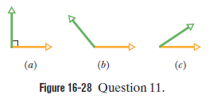 Figure 16-28 shows phasor diagrams for three situations in which two waves travel along the same string. All six waves have the same amplitude. Rank the situations according to the amplitude of the net wave on the string, greatest first.