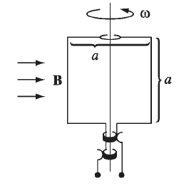 A square loop (side a) is mounted on a vertical shaft and rotated at angular velocity (Fig. 7.19). A uniform magnetic field B points to the right. Find thefor this alternating current generator.