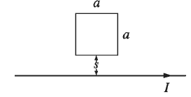A square loop of wire (side a) lies on a table, a distance s from a very long straight wire, which carries a current I, as shown in Fig. 7.18.