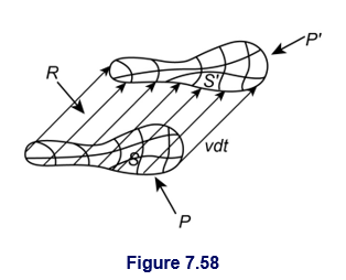 (b) Let S be the surface bounded by the loop at time t , and a surface bounded by the loop in its new position at time t+dt (see Fig. 7.58). The change in flux is