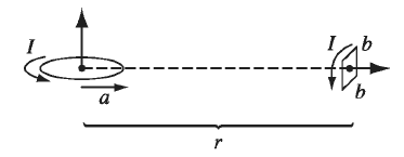 (b) Show that the interaction energy of two magnetic dipoles separated by a displacement is given by