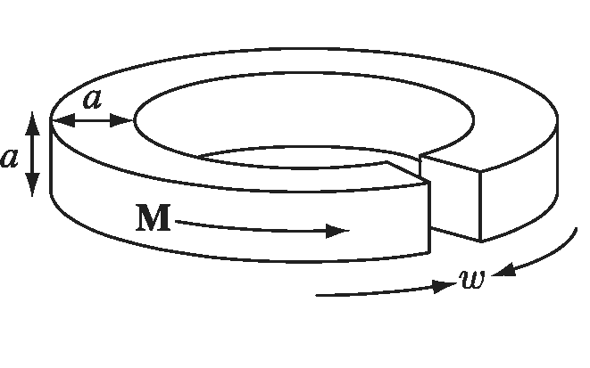 An iron rod of length and square cross section (side a) is given a uniform longitudinal magnetization , and then bent around into a circle with a narrow gap (width ), as shown in Fig. 6.14. Find the magnetic field at the center of the gap, assuming .