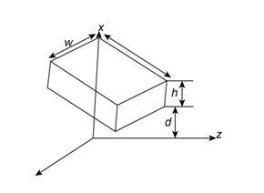 Draw the following circuit diagram shows rectangular box of length, width, and height , situated a distanced above the plane.